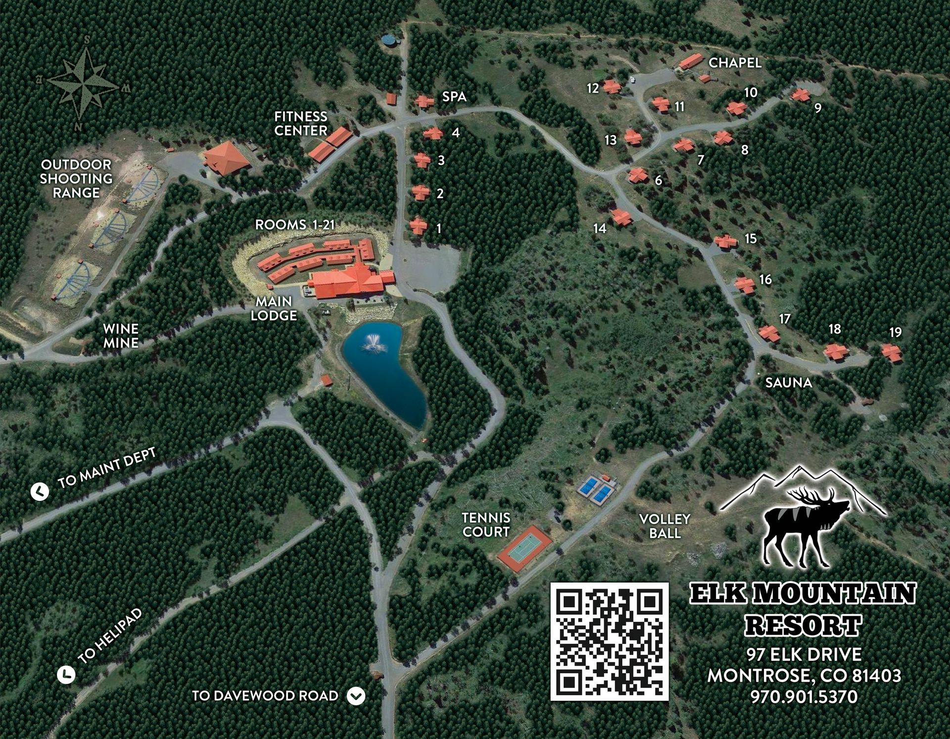 - TURN LEFT through the ELK MOUNTAIN RESORT arched sign